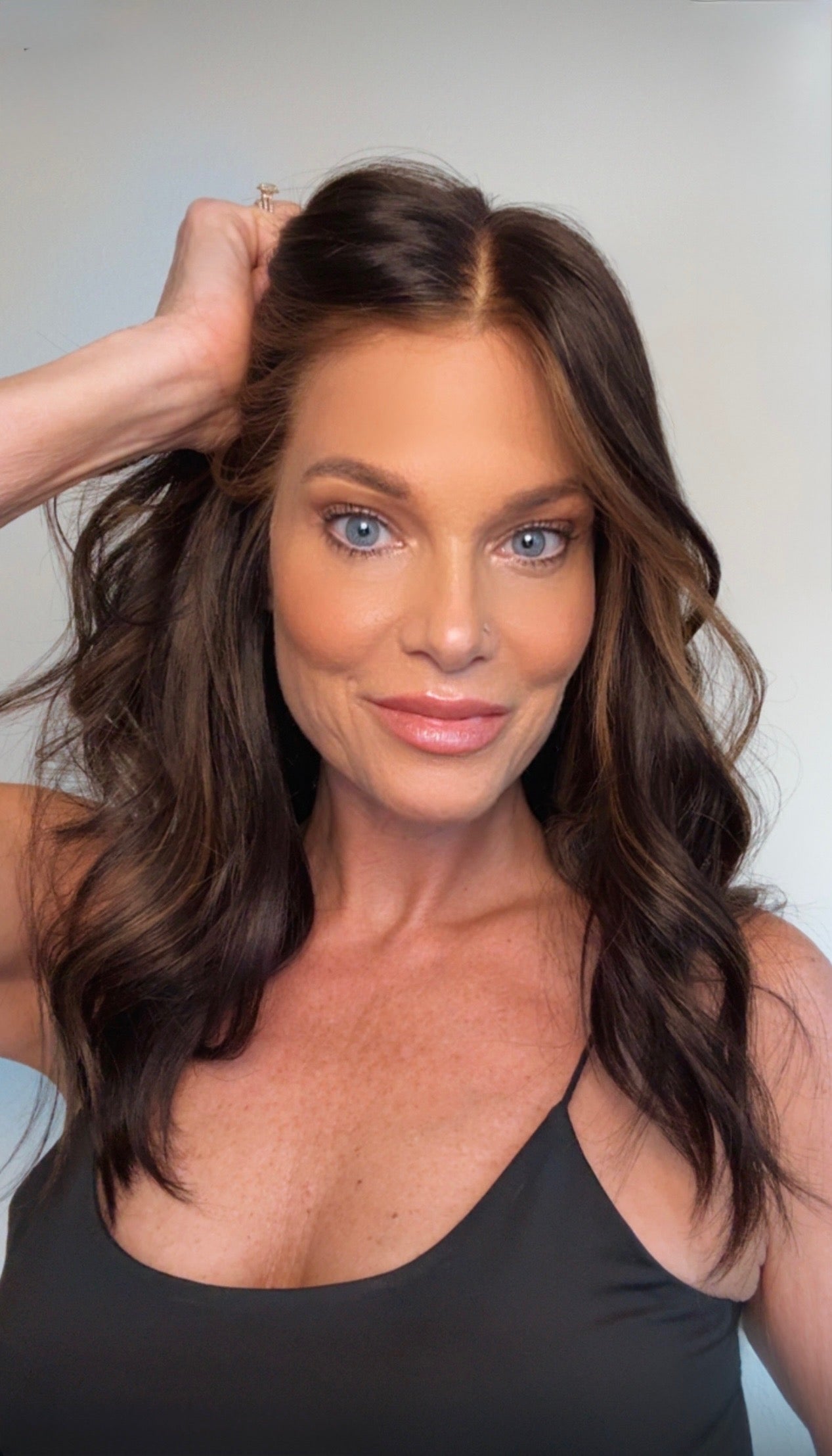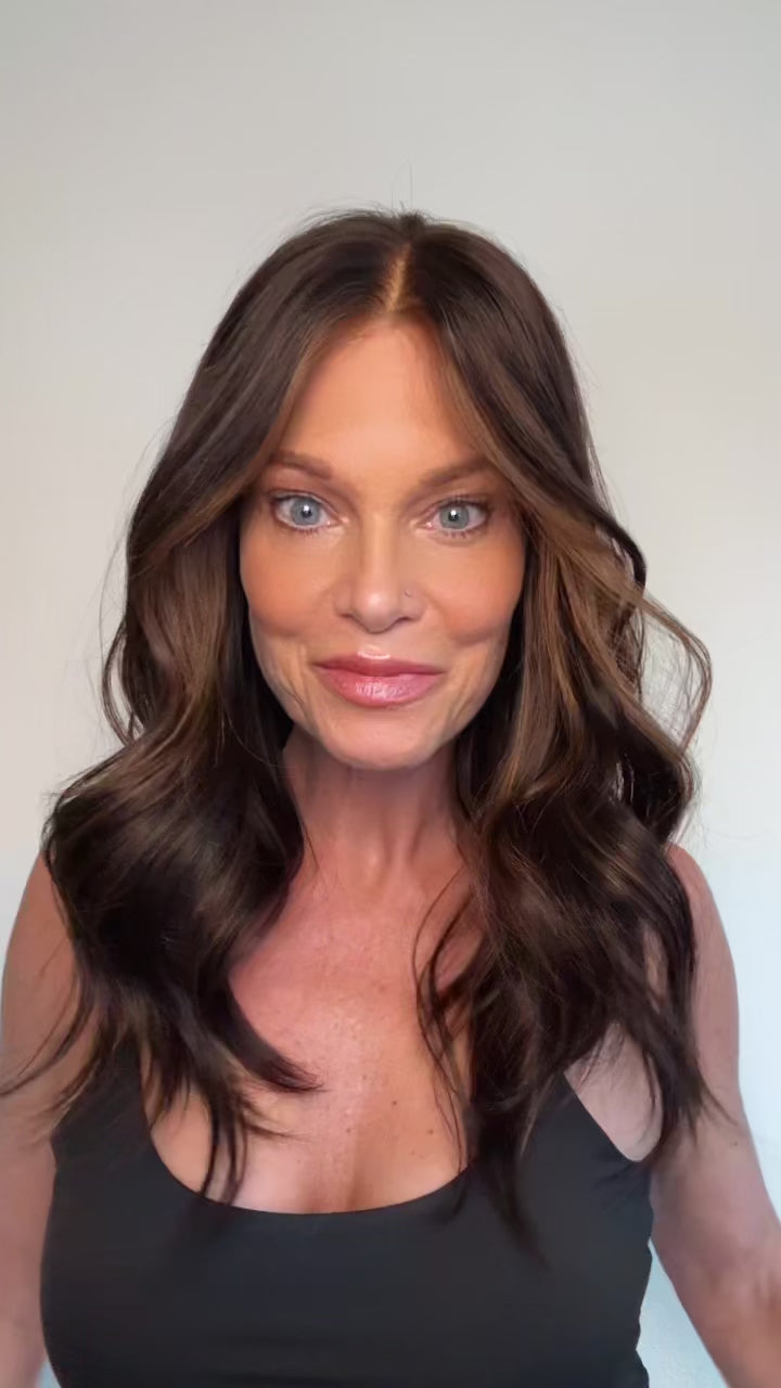 Arlo is a glue-less, ear-to-ear lace premium, lace-top human hair wig. Rich espresso brunette, level 4-5 base with level 6-7 warm mocha and soft caramel ribbons. This human hair lace top wig comes double lined with a removable liner, to help disguise any bio hair. Lightly bleached knots for the most realistic hairline. Ear tabs and removable pressure clips inside cap. This ready-to-wear premium human hair wig is available to ship today in size MEDIUM ONLY. Color: ESPRESSO BRUNETTE