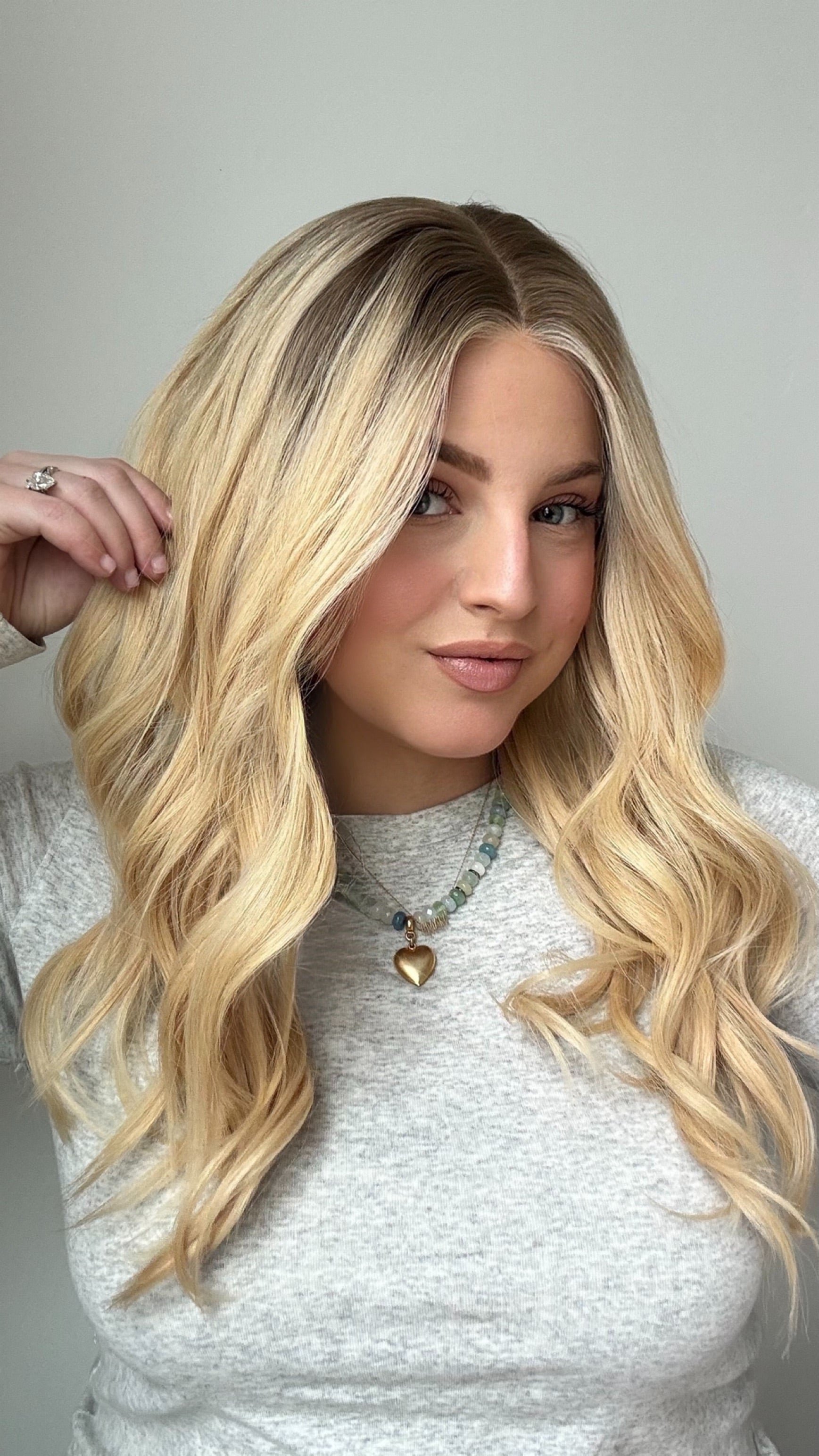 Brielle is a glue-less, ear-to-ear lace premium, lace-top human hair wig. A dimensional beige blonde with a natural level 6–7 ash-neutral shadow root melt. The mids and ends are a blend of champagne, vanilla, and soft honey blondes. Overall tone leans neutral-beige with a touch of warmth.This human hair lace top wig comes double lined with a removable liner, to help disguise any bio hair. Lightly bleached knots for the most realistic hairline. Ear tabs and removable pressure clips inside cap. This ready-to-wear premium human hair wig is available to ship today in size SMALL ONLY. Color: Beige blonde