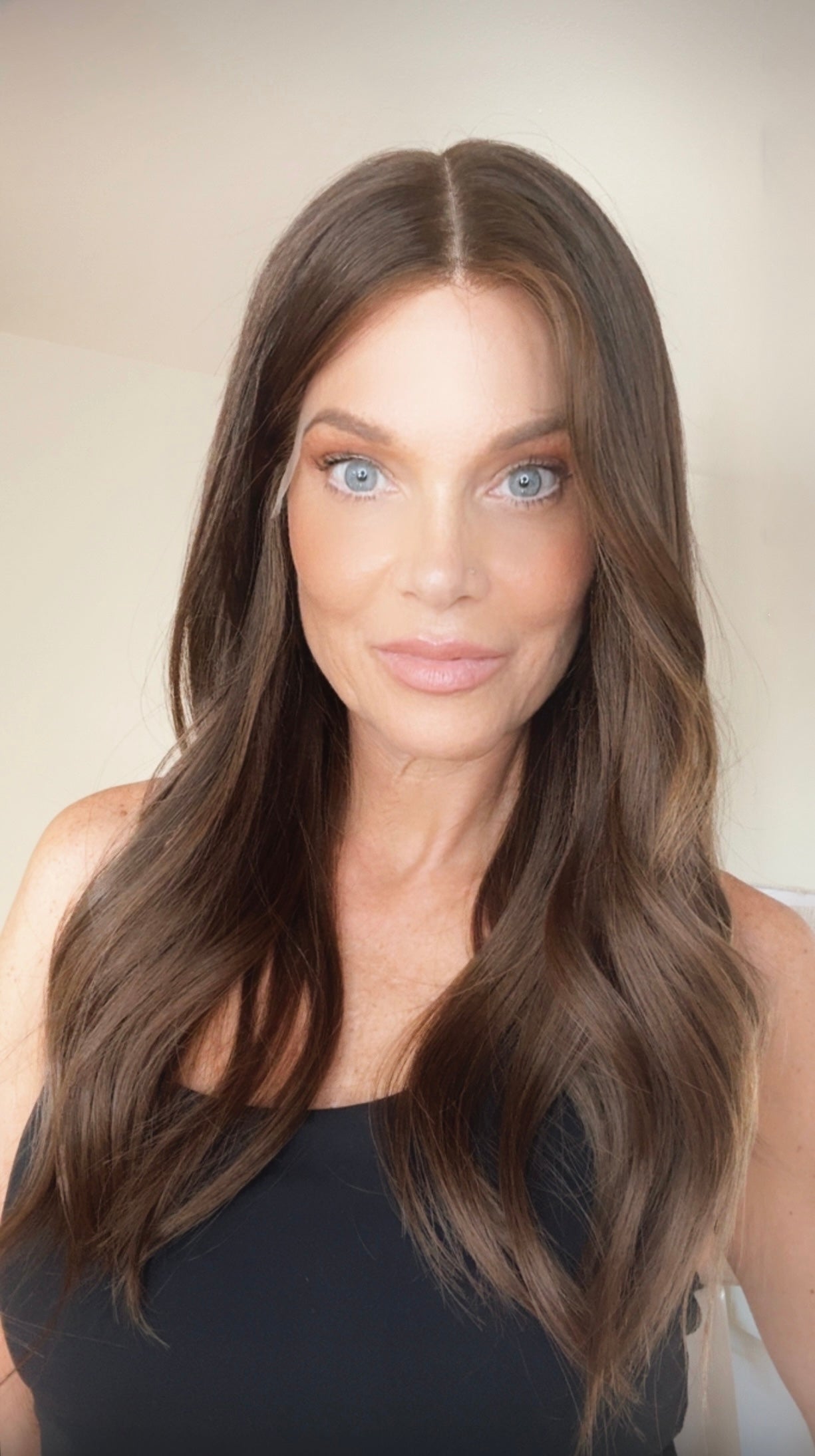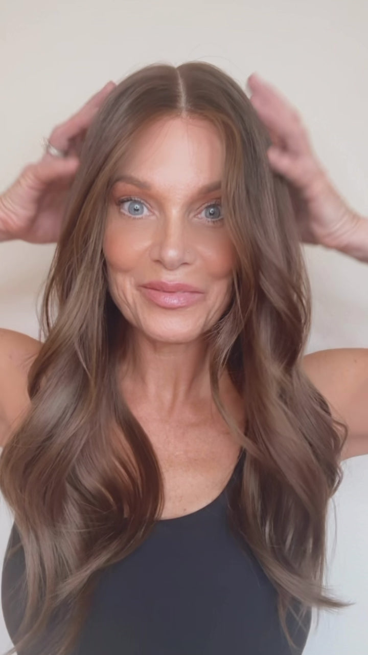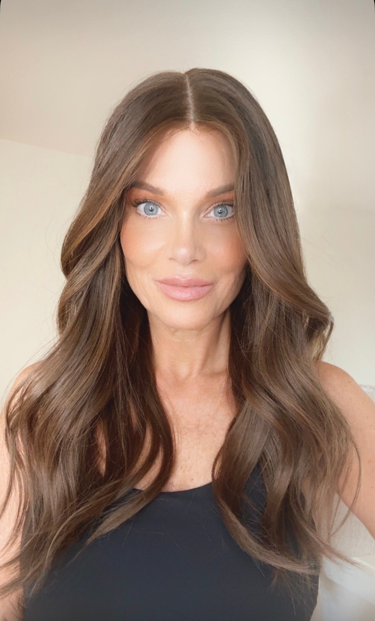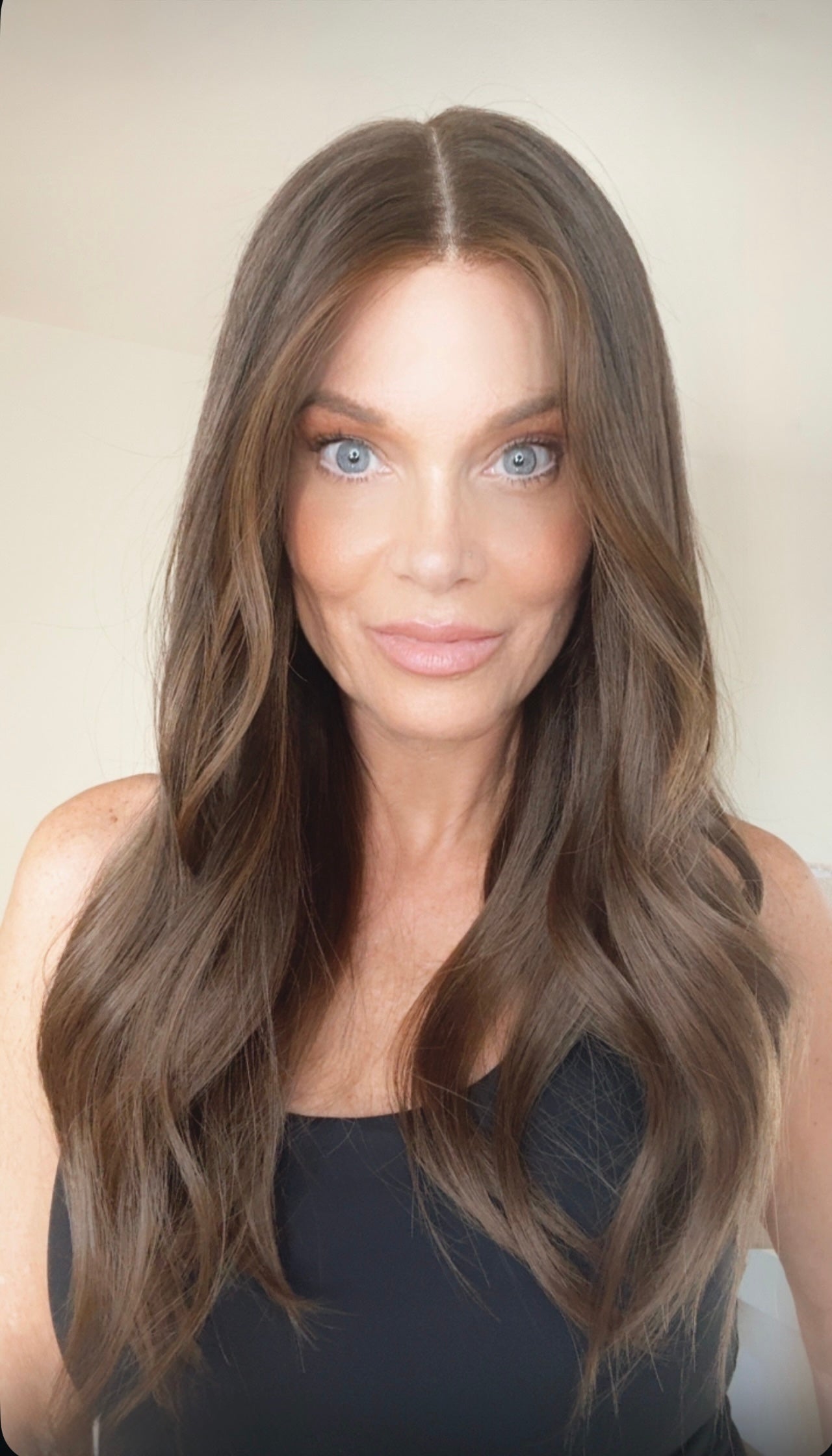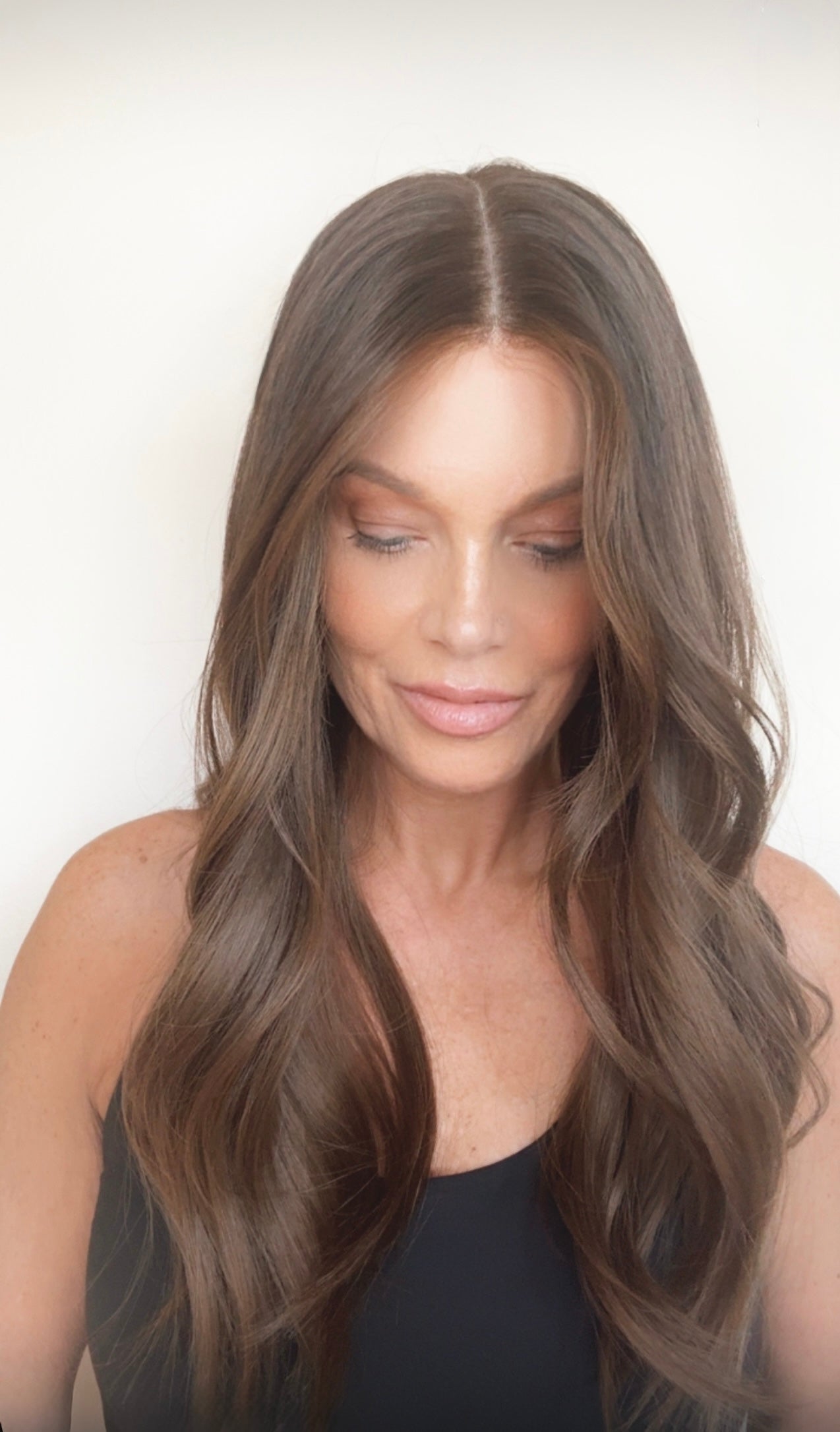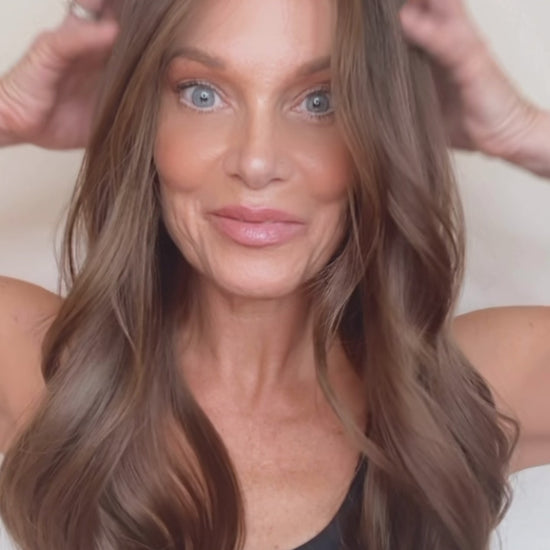 Carson is a light density, European texture, lace-top human hair wig. Custom colored in a soft neutral beige and mushroom brown with dimensional cool undertones. This human hair lace top wig comes double lined with a removable lace liner, to help disguise any bio hair and lightly bleached knots for the most realistic hairline. Ear tabs and removable pressure clips inside cap.