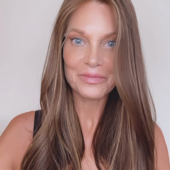 Paisley is a glue-less, ear-to-ear lace premium, lace-top human hair wig. Custom colored in a rich dimensional brunette with soft golden beige highlights. Lightly bleached knots for the most realistic hairline, with ear tabs and removable pressure clips inside cap. This ready-to-wear premium human hair wig is available to ship today in size SMALL ONLY. For additional sizes, please see Lexi Preorder.