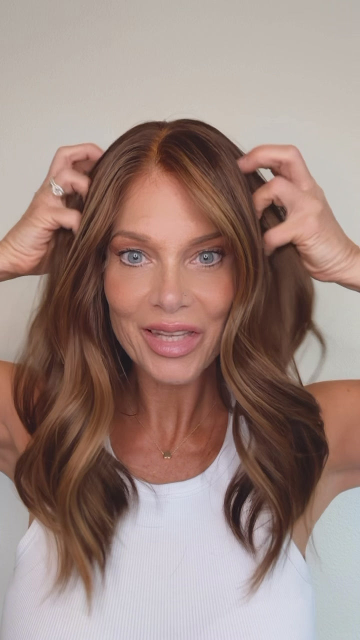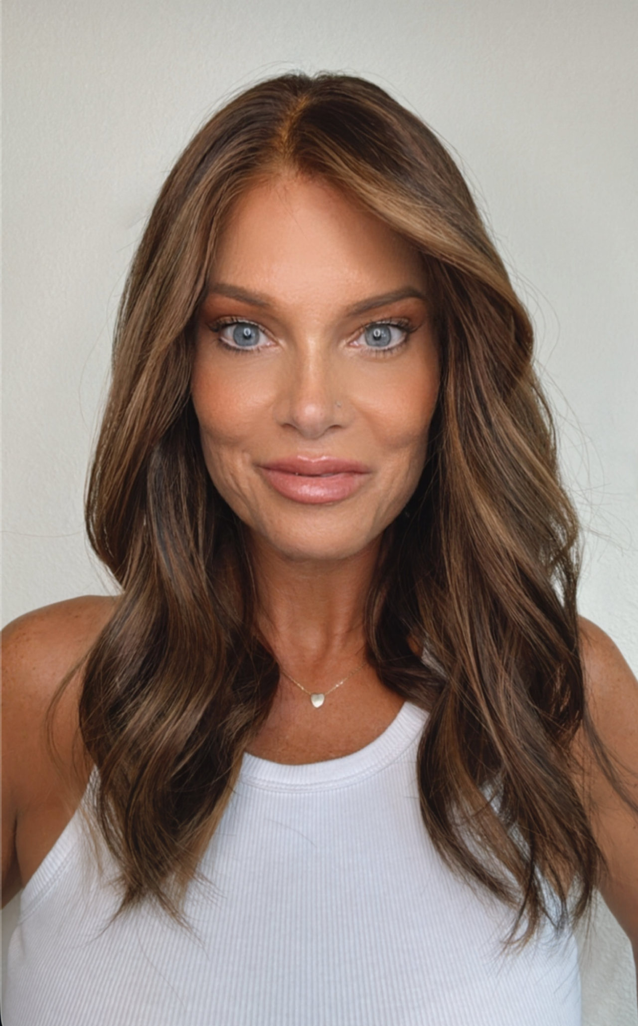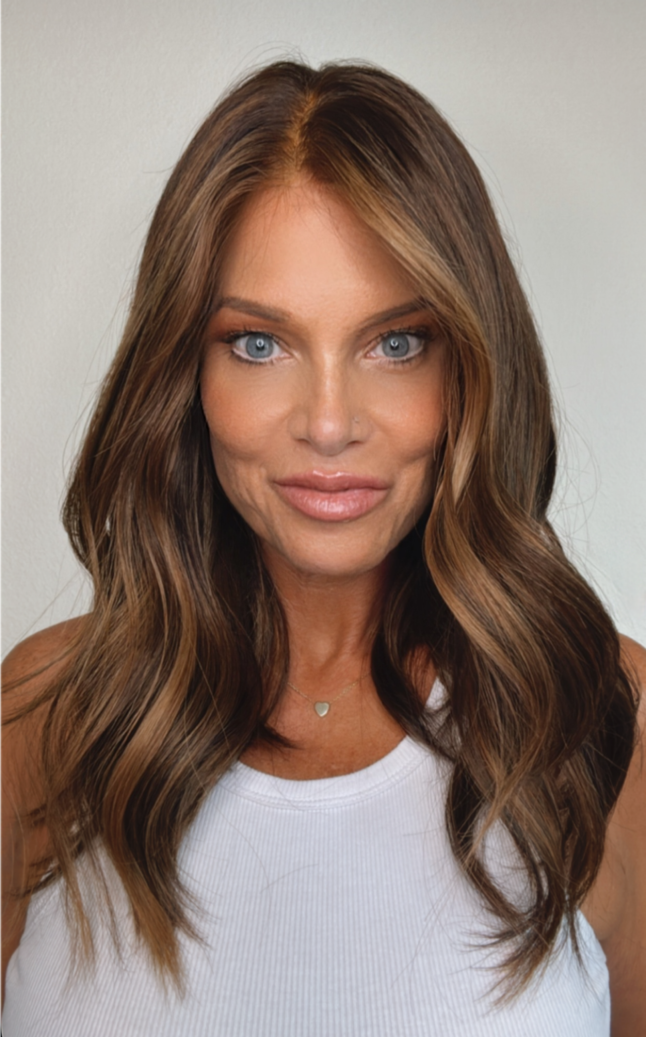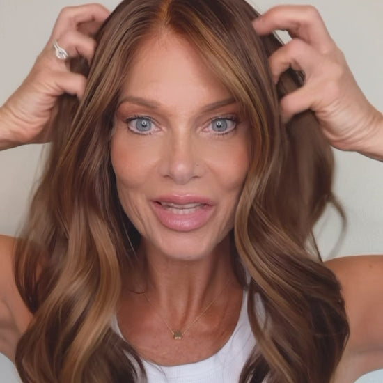 Lilith is a light-density, premium human hair lace top wig. Custom colored in a rich, warm, dimensional medium chocolate brown (level 5-6) with golden caramel tones. Transparent lace top with a removable silk top, to hide knots and help disguise any bio hair. This ready-to-wear, light-density, premium human hair wig is available in sizes MEDIUM only. For additional sizes see Lilith Preorders.