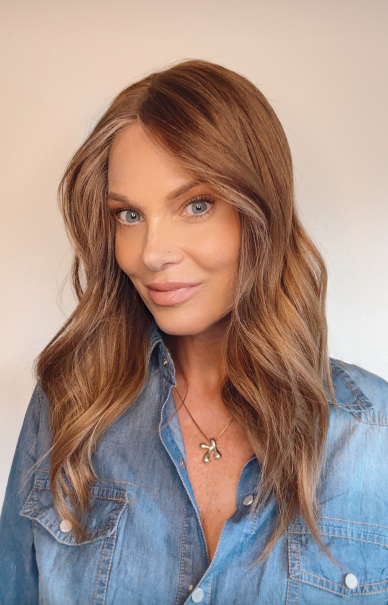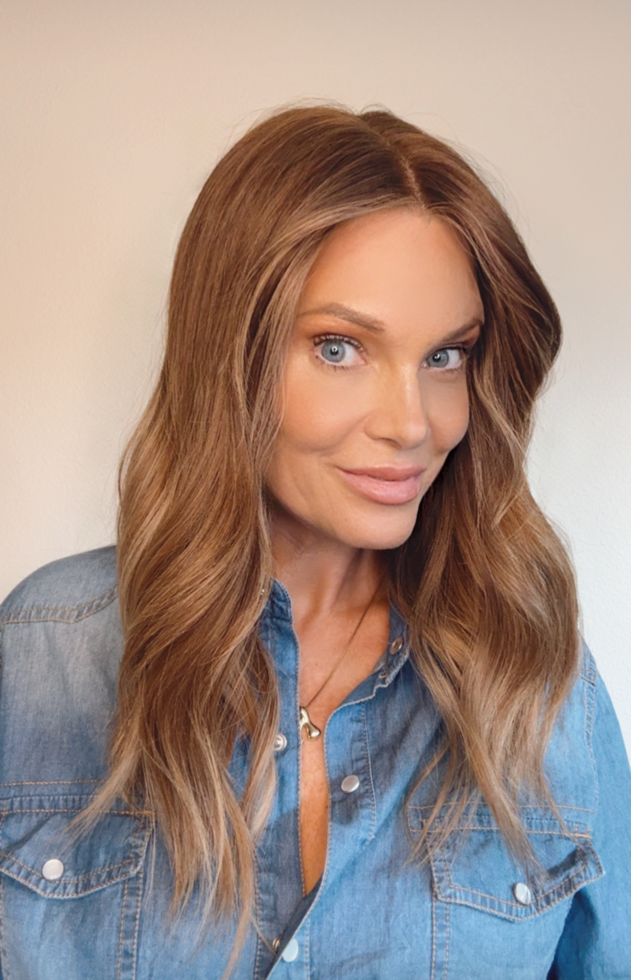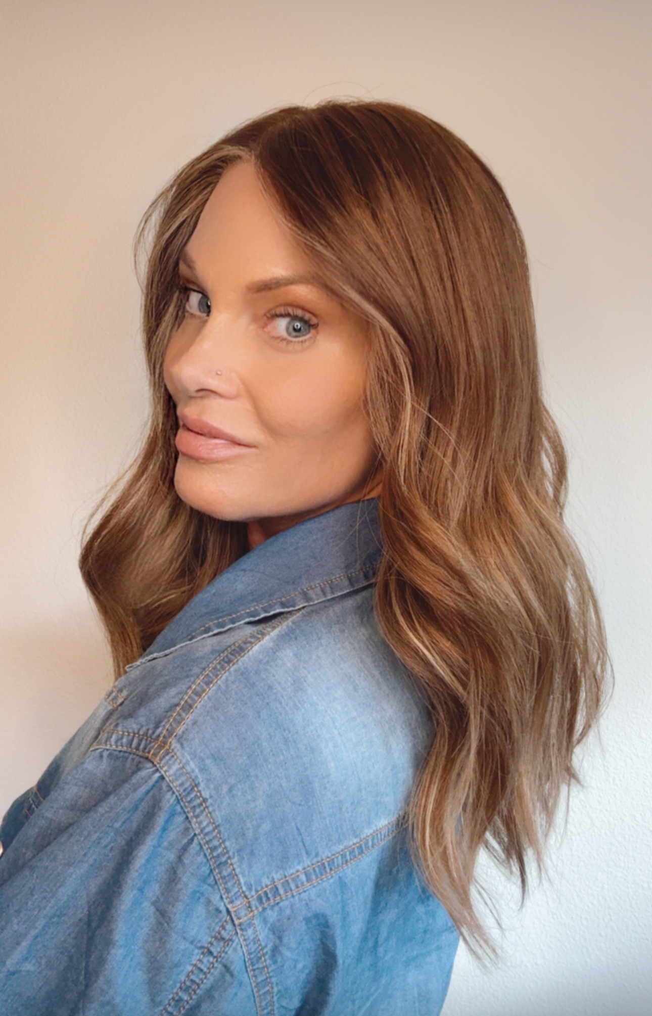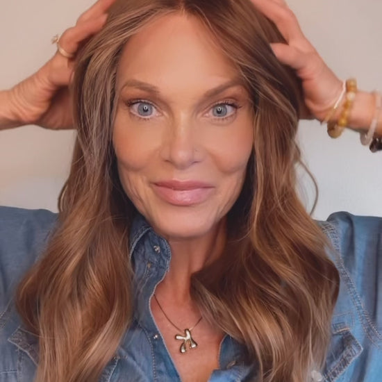Paisley is a glue-less, ear-to-ear lace premium, lace-top human hair wig. Custom colored in medium chestnut brown base with subtle, hand painted beige and sandy blonde balayage. Lightly bleached knots for the most realistic hairline, with ear tabs and removable pressure clips inside cap. This ready-to-wear premium human hair wig is available to ship today in size SMALL ONLY. For additional sizes, please see Paisley Preorder.