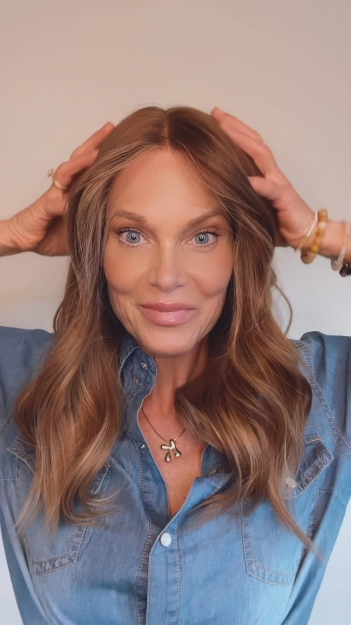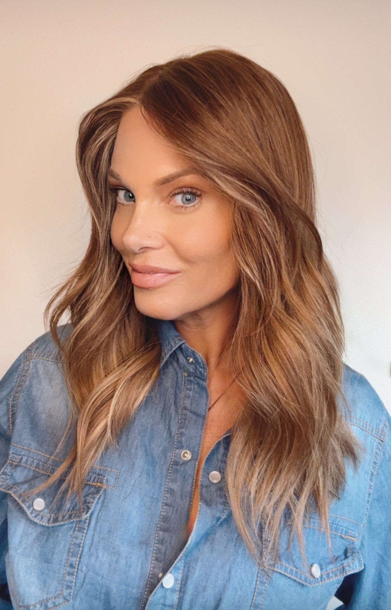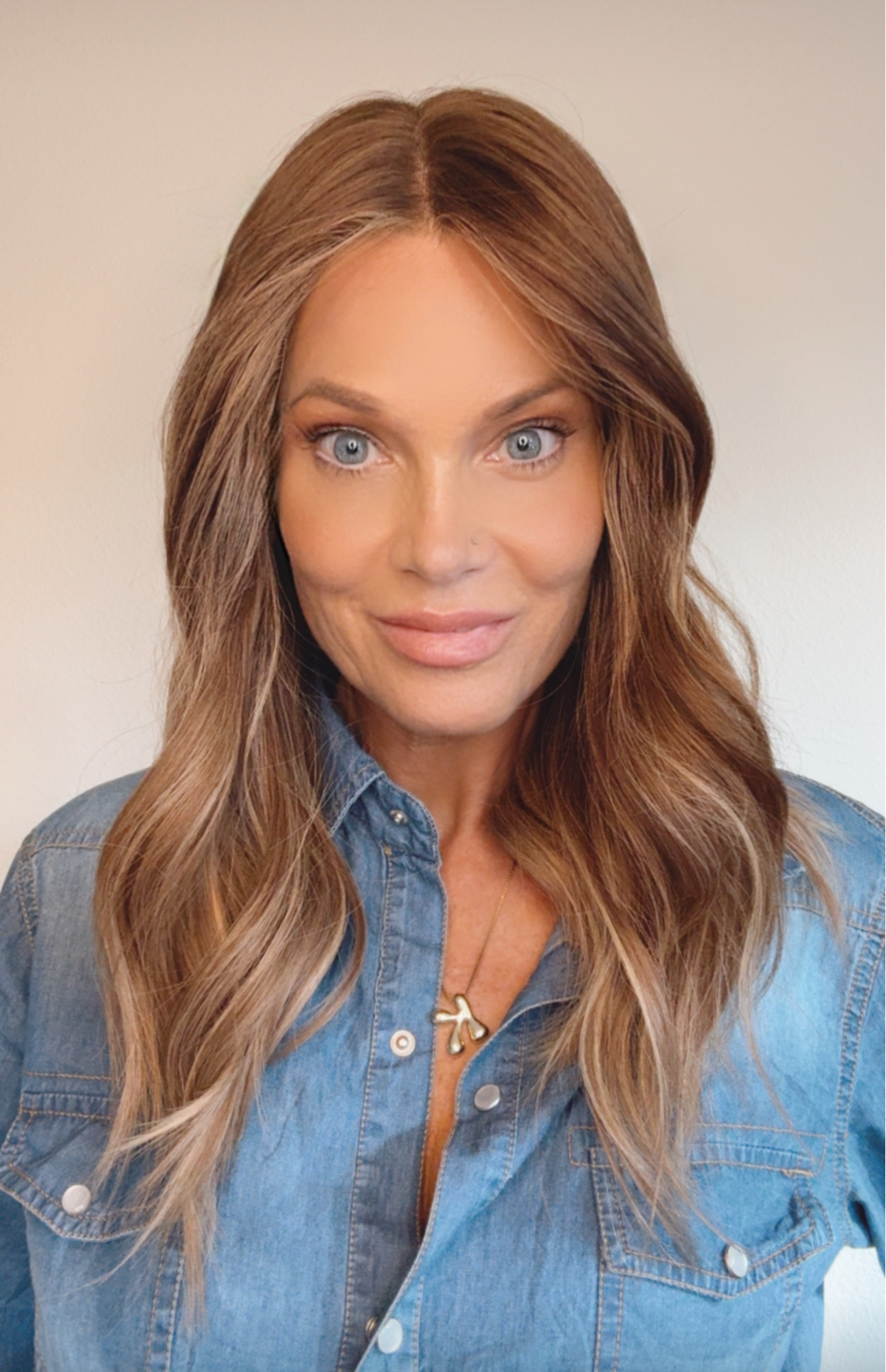 Paisley is a glue-less, ear-to-ear lace premium, lace-top human hair wig. Custom colored in medium chestnut brown base with subtle, hand painted beige and sandy blonde balayage. Lightly bleached knots for the most realistic hairline, with ear tabs and removable pressure clips inside cap. This ready-to-wear premium human hair wig is available to ship today in size SMALL ONLY. For additional sizes, please see Paisley Preorder.