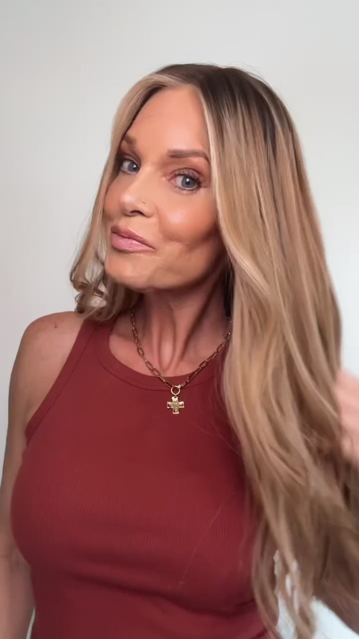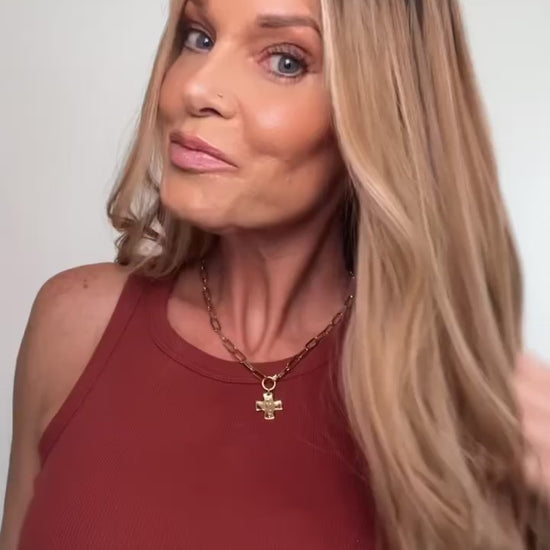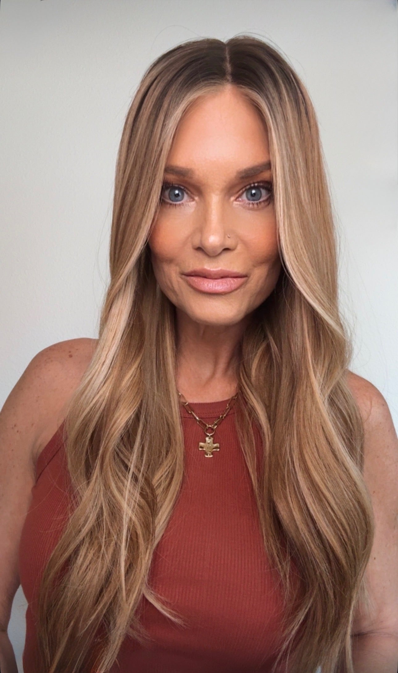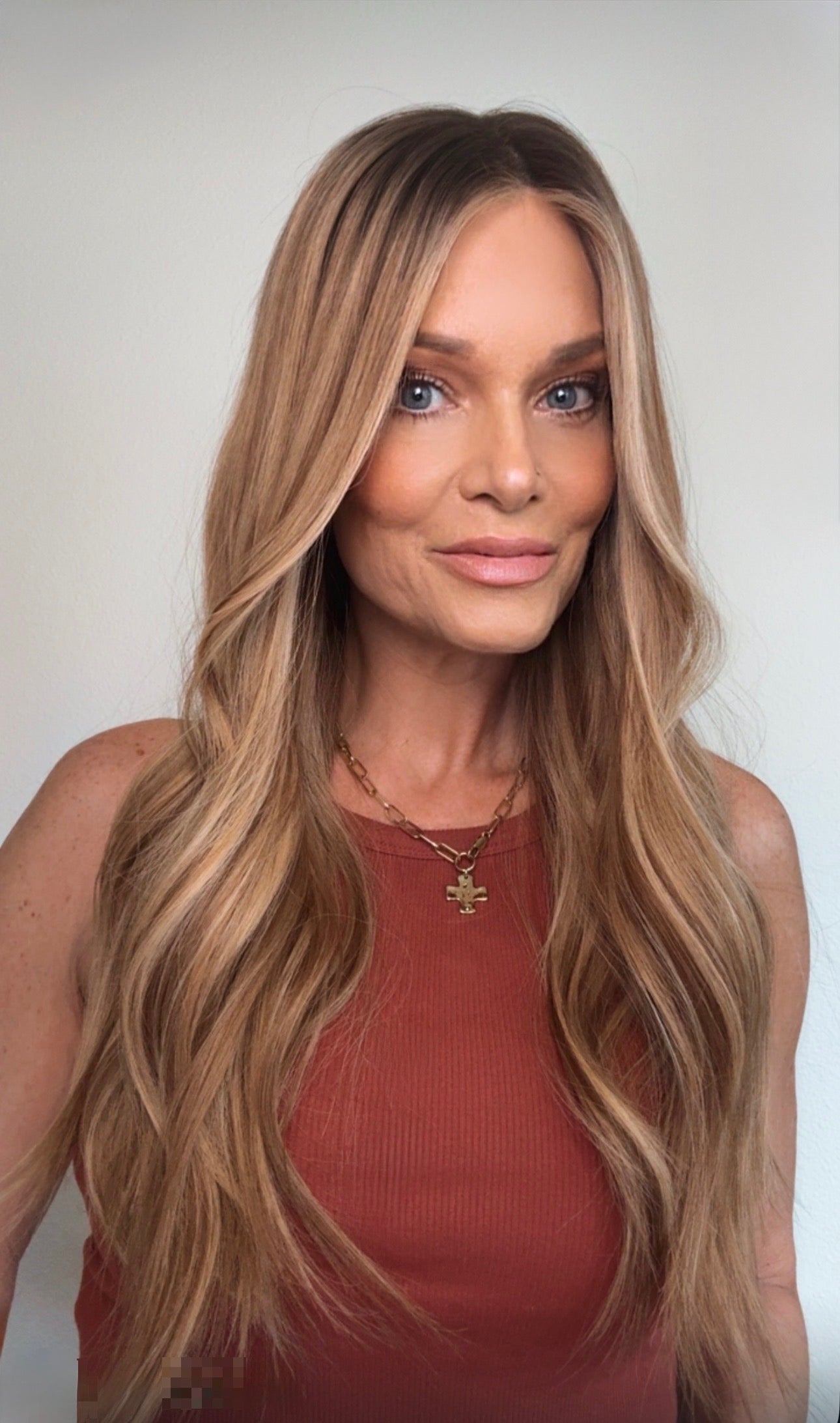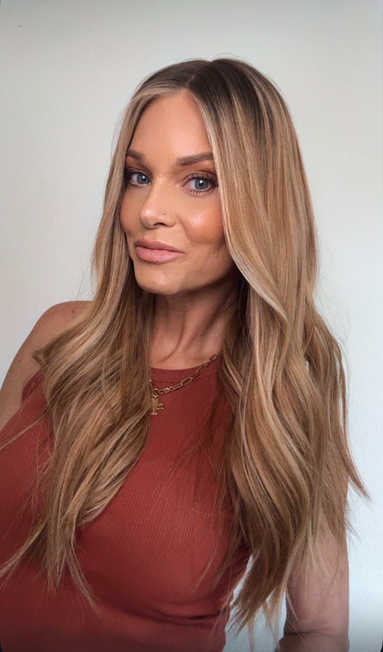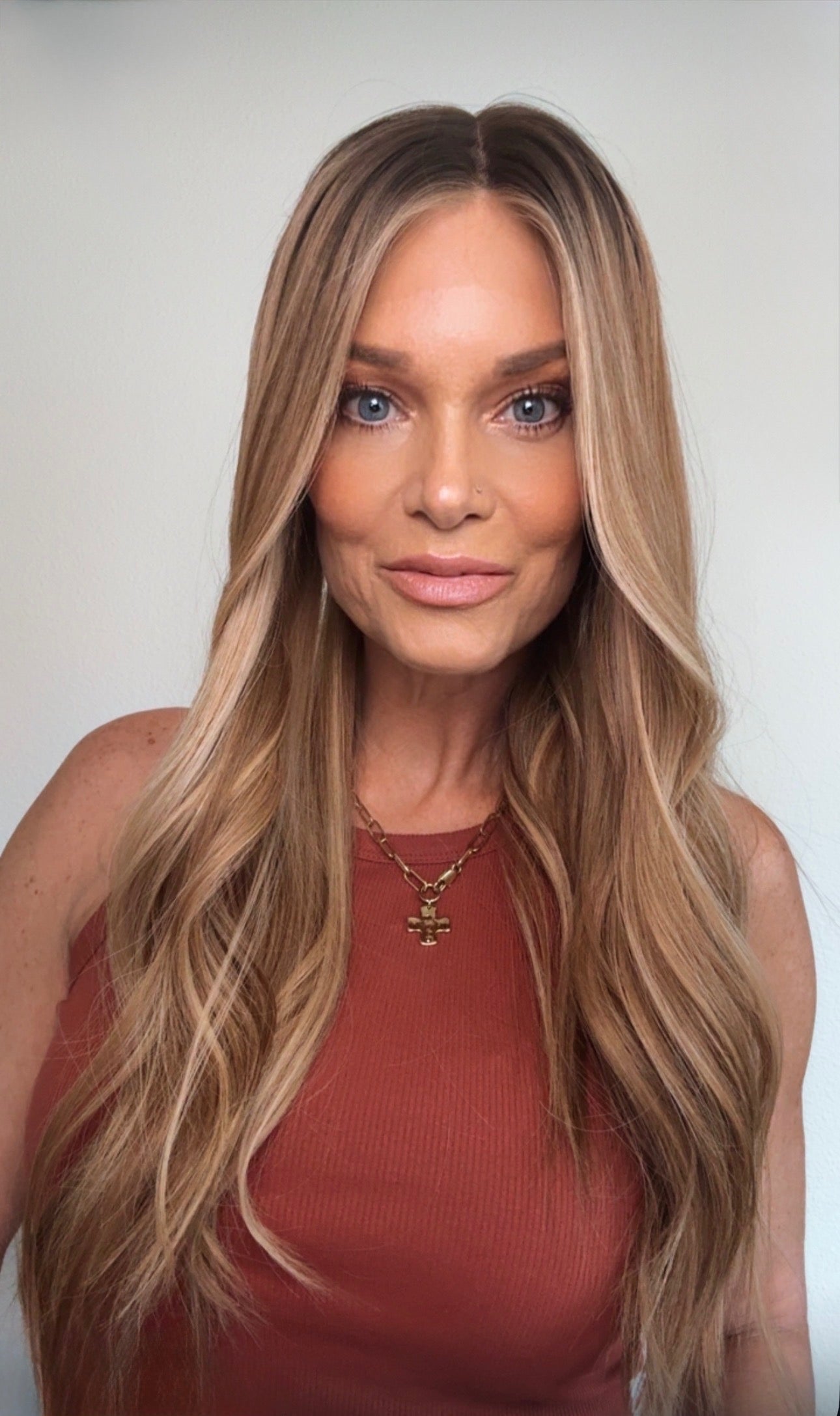 Roan is a glue-less, ear-to-ear lace Premium, light density, European, human hair, lace top wig. Warm caramel brunette balayage with a soft level 5-6 root melt. Honey-beige highlights, level 6-7 and dimensional golden ribbons for that lived-in, sunlit glow. This human hair lace top wig comes double-lined with a removable liner, to help disguise any bio hair. Lightly bleached knots for the most realistic hairline. Ear tabs and removable pressure clips inside cap. This ready-to-wear premium human hair wig is available to ship today in sizes SMALL and MED ONLY. Color: Warm caramel brunette