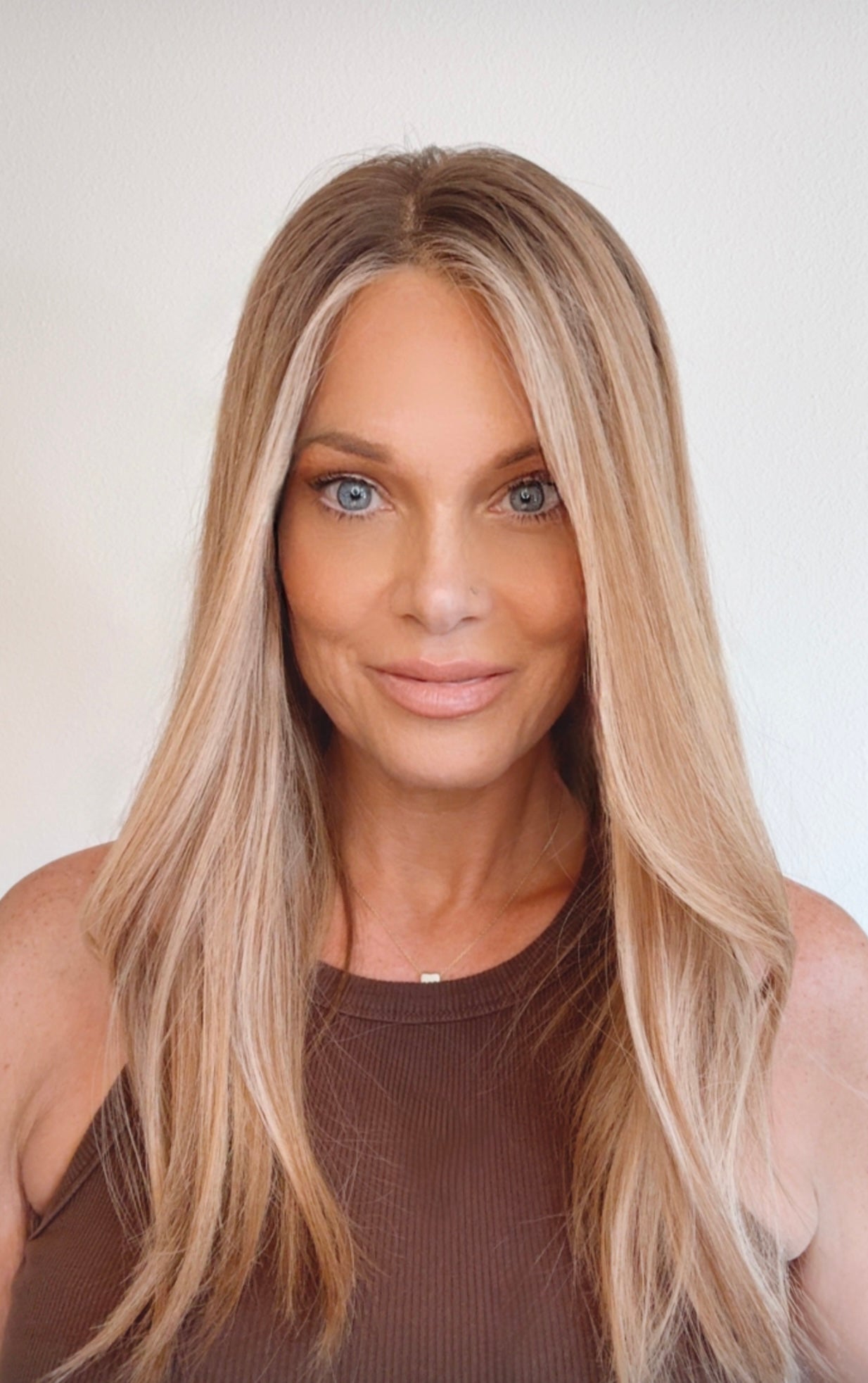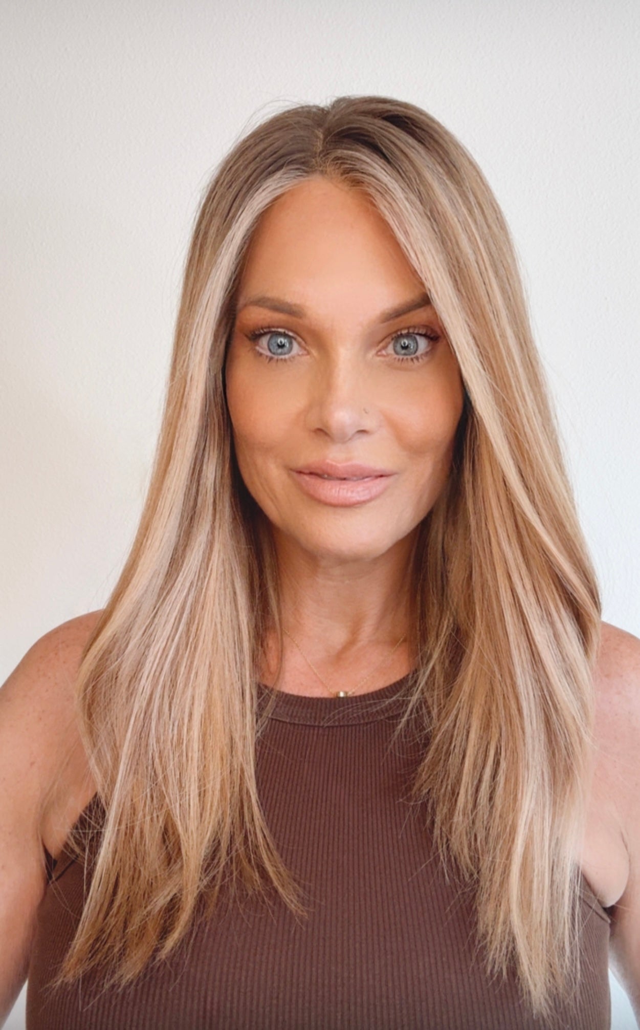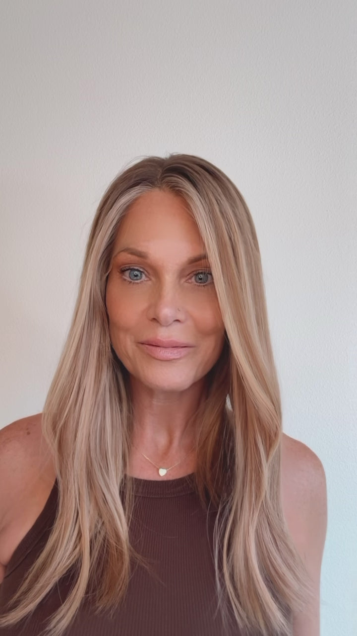 - Color: Warm Blonde with rooting, highlights and lowlights