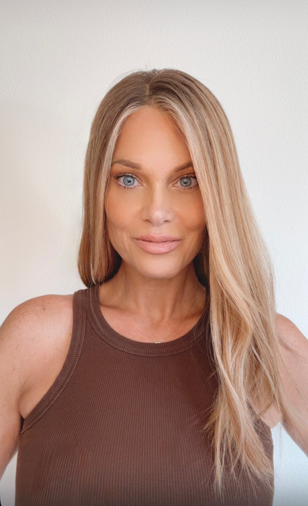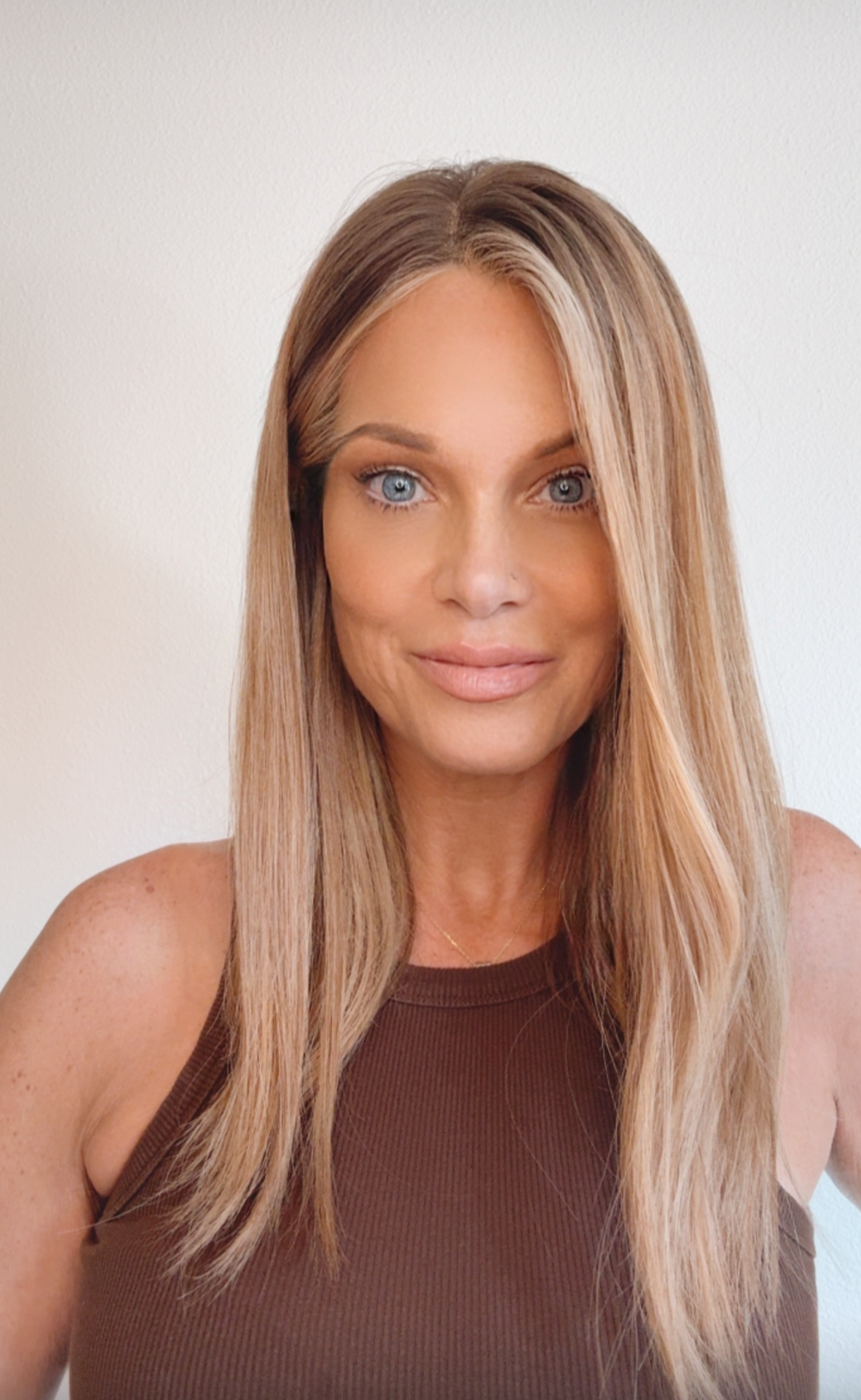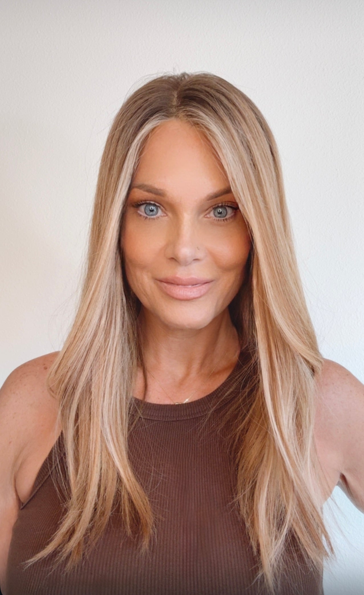- Color: Warm Blonde with rooting, highlights and lowlights